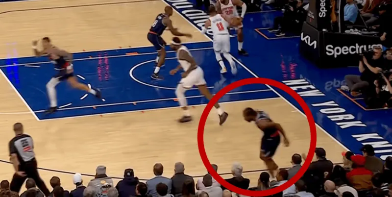 随后快船跟队记者Justin Russo报道,在上一场对阵尼克斯的比赛中,伦纳德踩到了一位坐在场边的球迷,导致右脚踝扭伤。