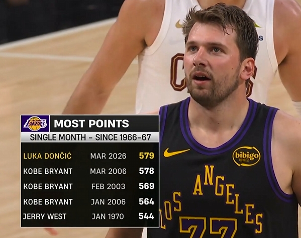 自1966-67赛季以来东契奇 2026年3月 579分科比 2006年3月 578分科比 2003年2月 569分科比 2006年1月 564分杰里·韦斯特 1970年1月 544分...